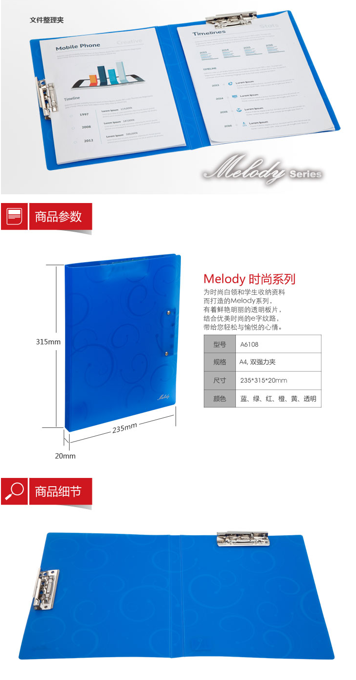 商品名稱:齊心 A6108 E紋melody文件夾 A3/A4通用 雙強(qiáng)力夾