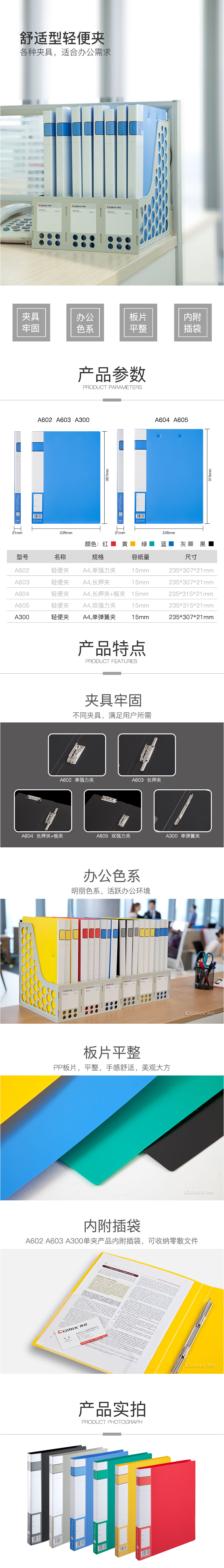 > 齊心 A300 辦公必備輕便夾 A4 單彈簧夾