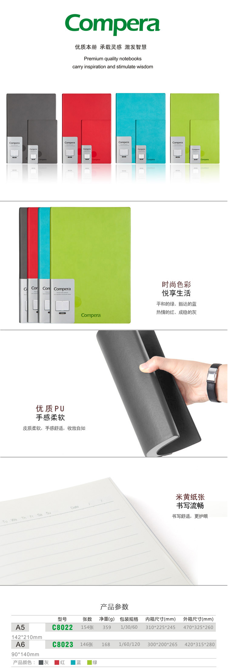 > 齊心 C8022 Compera 皮面筆記本 A5 154張