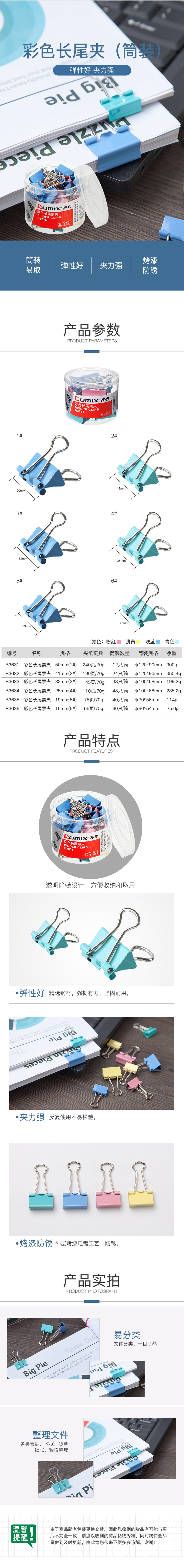 商品名稱:齊心 B3635長尾票夾 5# 19mm 40只/筒