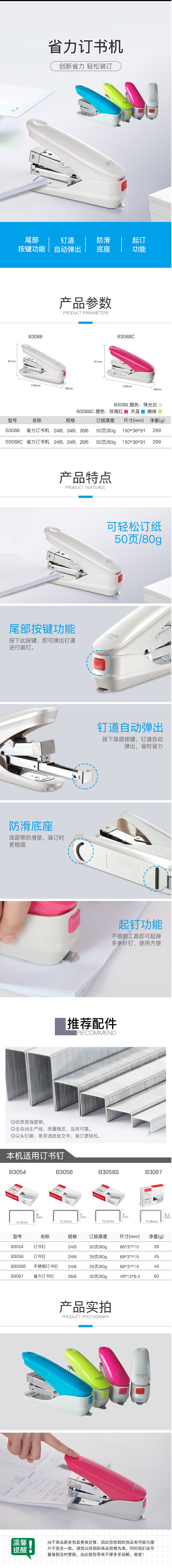 商品名稱:齊心 B3088C 省力訂書機(jī)