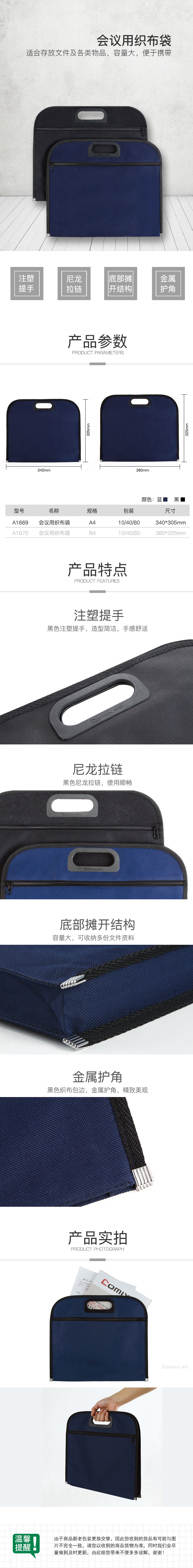 商品名稱:齊心 A1669 會議專用織布袋 A4雙袋
