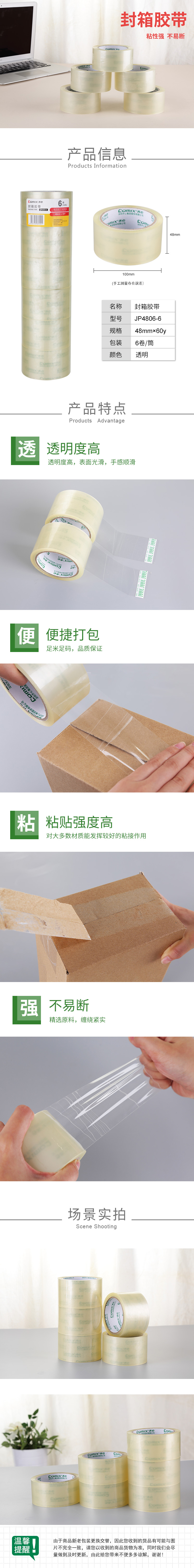 商品名稱:齊心 JP4806-6 普透封箱膠帶 6卷/筒 48mm*60y