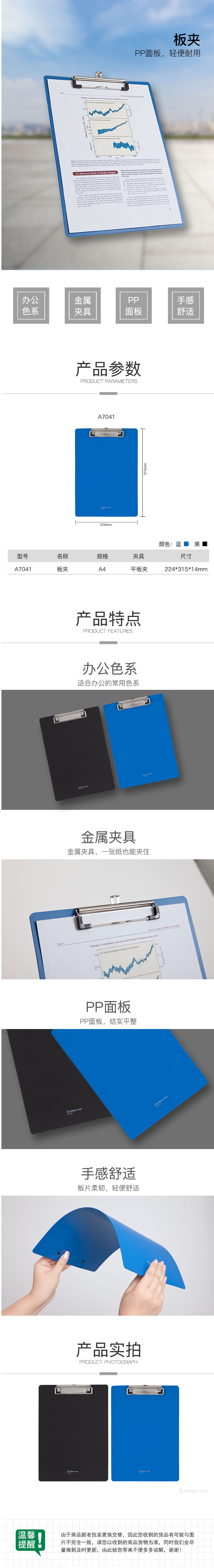 商品名稱:齊心 A7041 經(jīng)濟(jì)型PP平板夾 A4