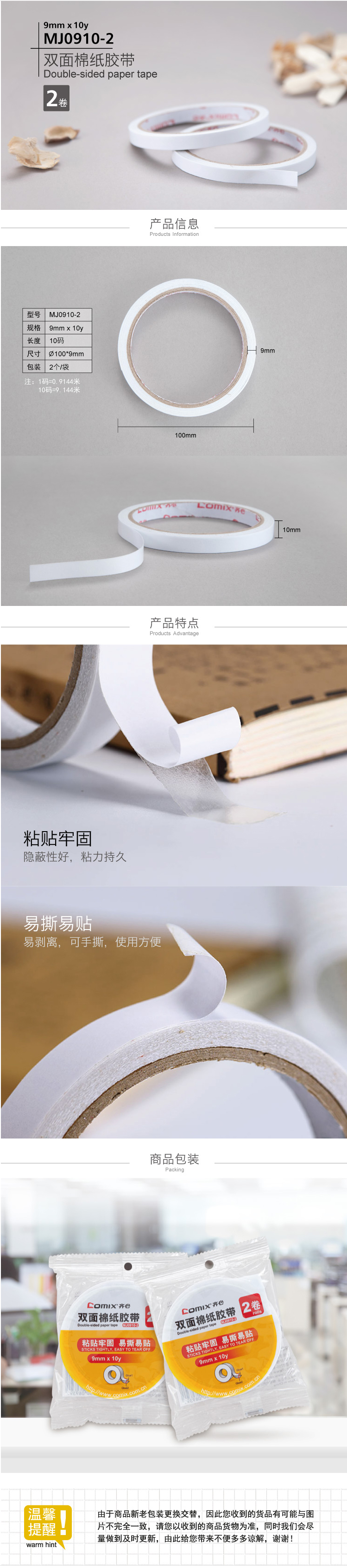 商品名稱:齊心 MJ0910-2 雙面棉紙膠帶