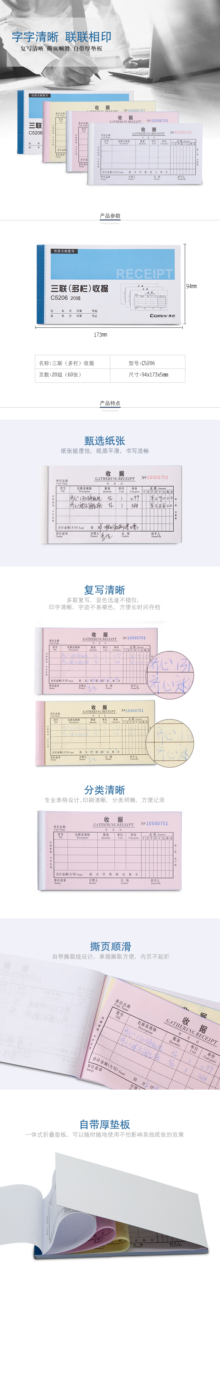 商品名稱:齊心 C5206 三聯(lián)多欄收據(jù)單 48K