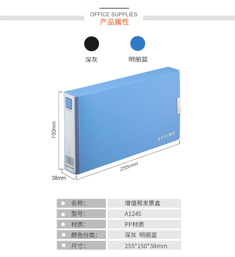 商品名稱(chēng):齊心 A1245 增值稅發(fā)票盒 票據(jù)
