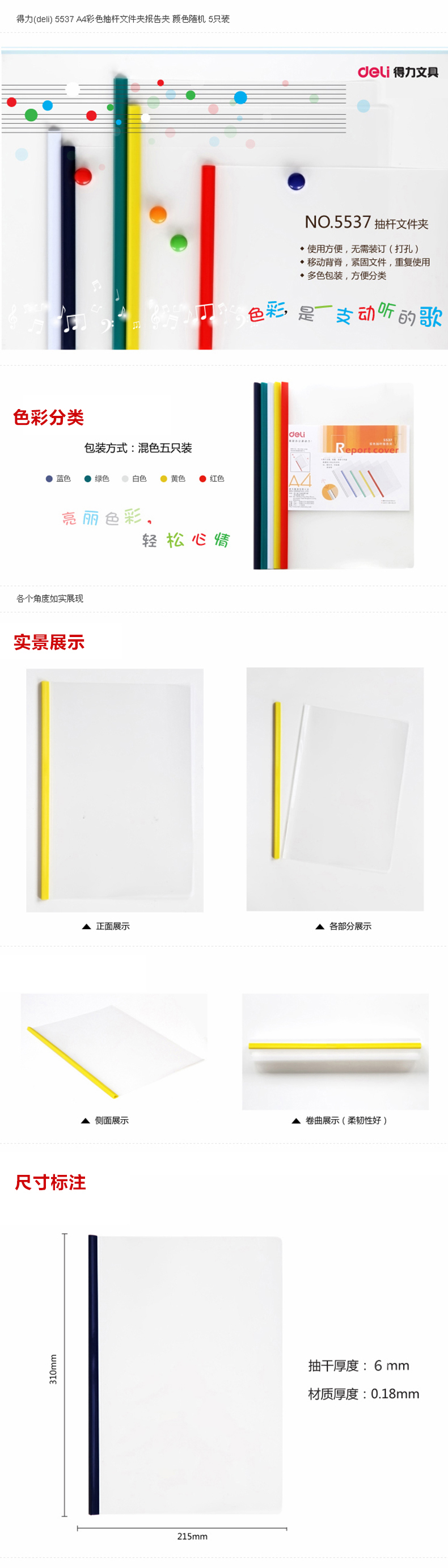 商品名稱:得力5537抽桿夾(混)(5只/包)