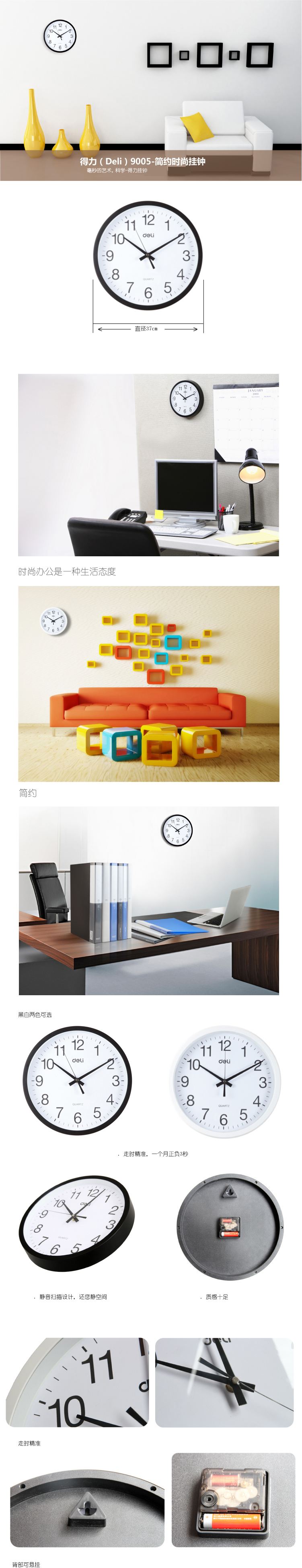 商品名稱:得力9005掛鐘(黑)(只)30cm(12寸)