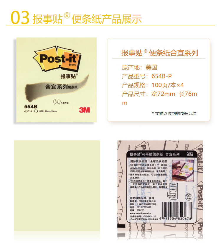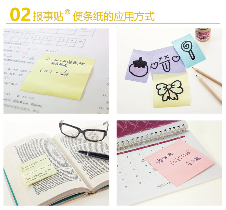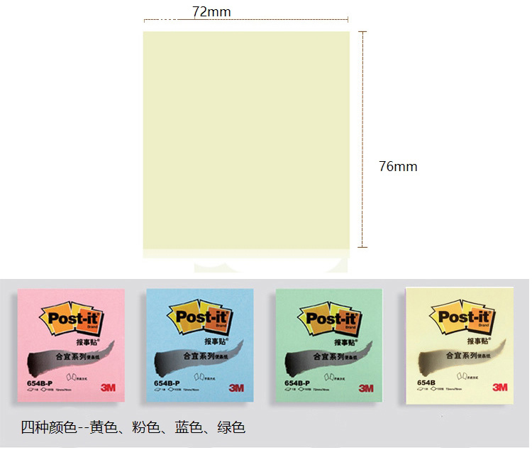 商品名稱:3M 便利貼 報(bào)事貼/便條紙/便簽紙/便簽本 合宜系列辦公用品 72*76 4色彩色報(bào)事貼 654B-4P