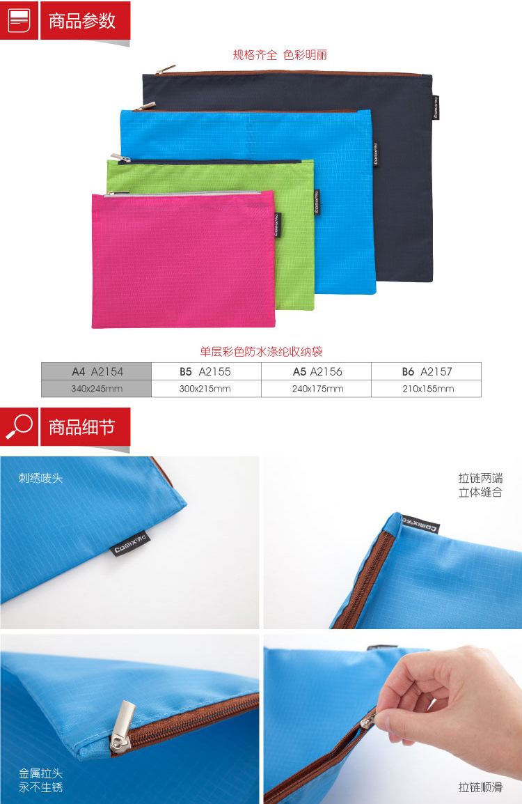 > 齊心 A2154 單層彩色防水滌綸收納袋 A4